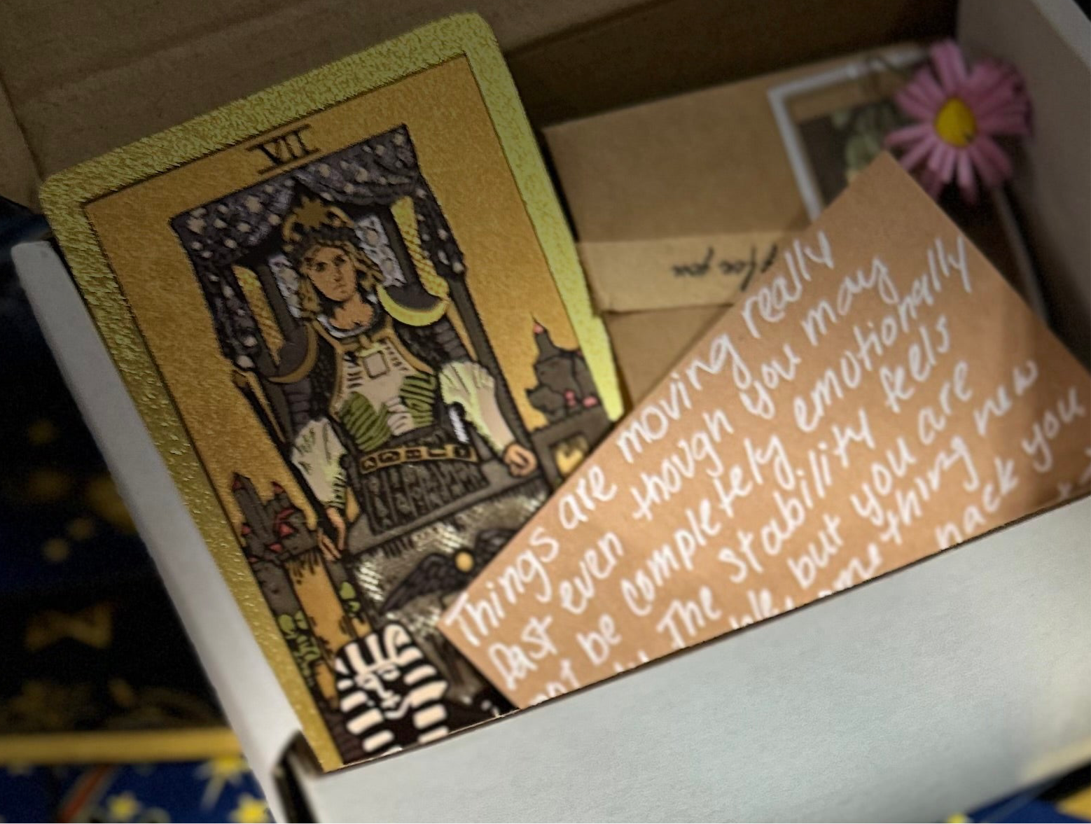 Handwritten personal reading on a card, includes 1 tarot card ✨