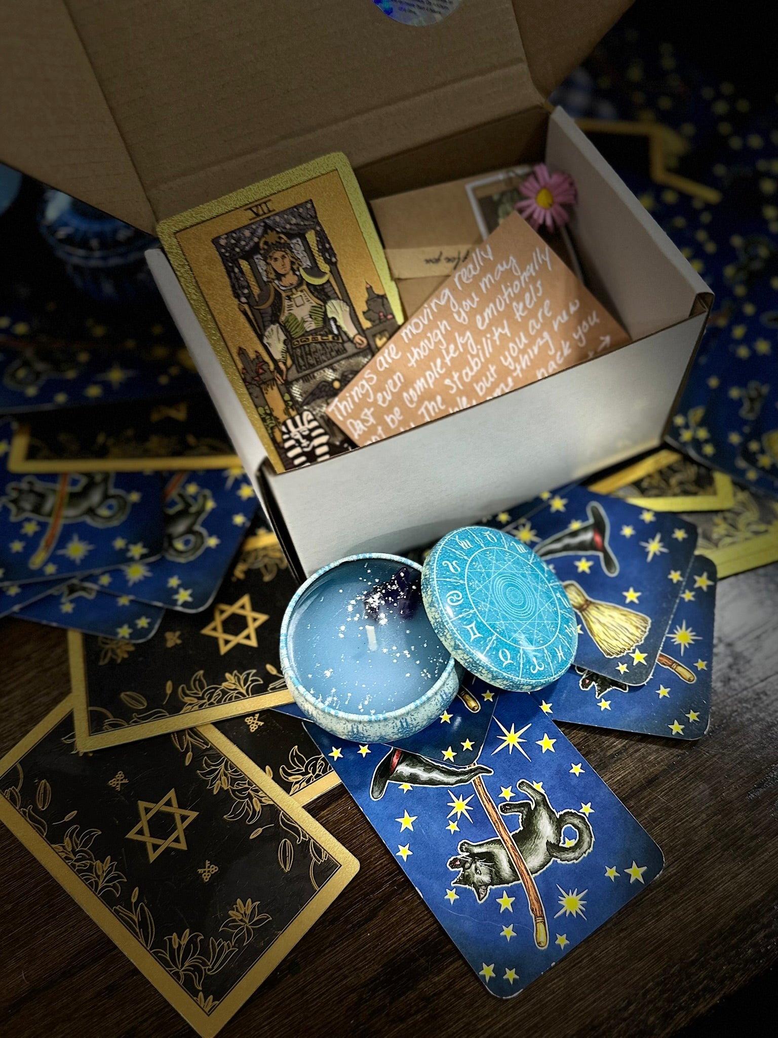 Each candle comes with a card pulled especially for you, with a fortune attached. The deck once belonged to my mom and still has her energy.